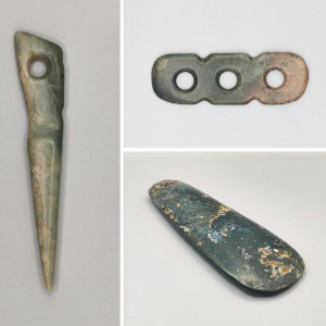 吉林东部长白山旧石器时代遗址群和龙大洞遗址不同阶段发现的磨制石器(拼版照片)。