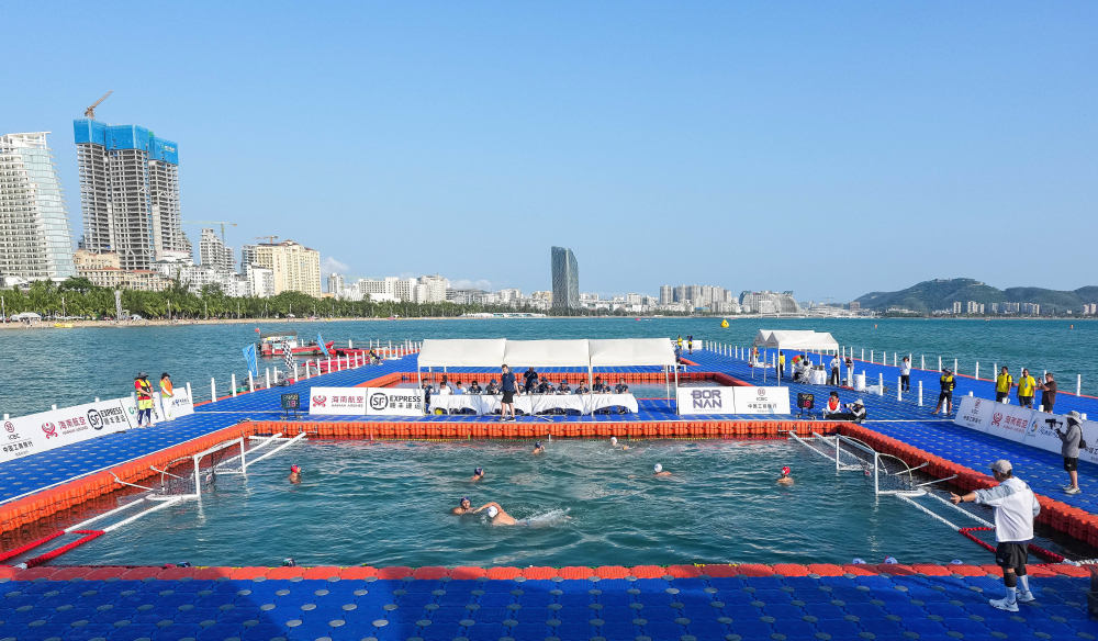 2026年4月26日,选手们在三亚亚沙会公开水域游泳男子5公里比赛中。新华社发(马子涵摄)