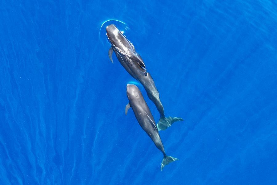 2024年7月6日,短肢领航鲸母子对在海南岛东部海域畅游(无人机照片)。新华社记者 张丽芸 摄